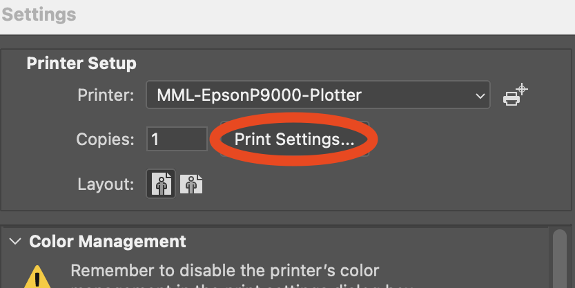 Choose ***MML-EpsonP9000-Plotter*** as your printer.