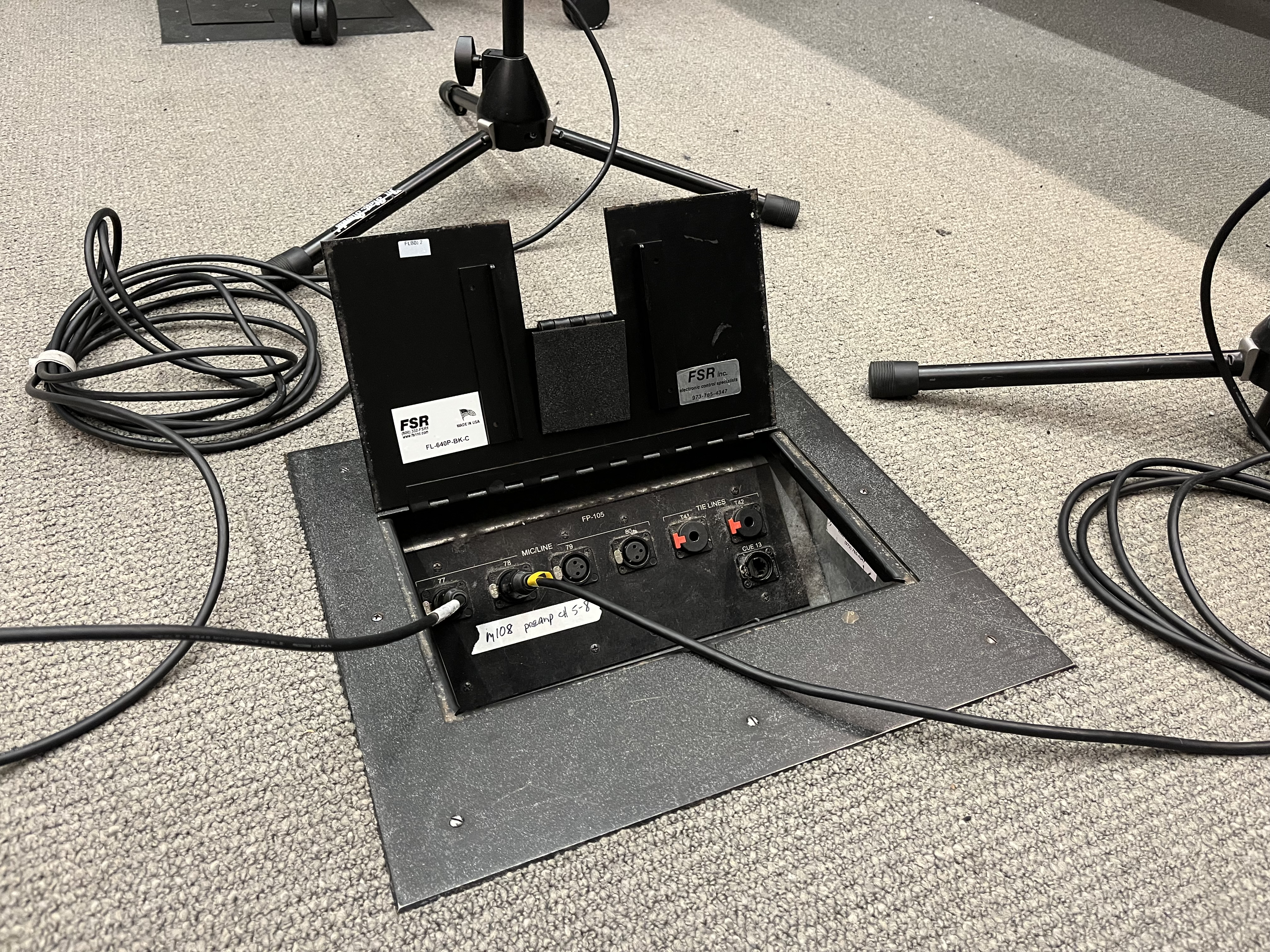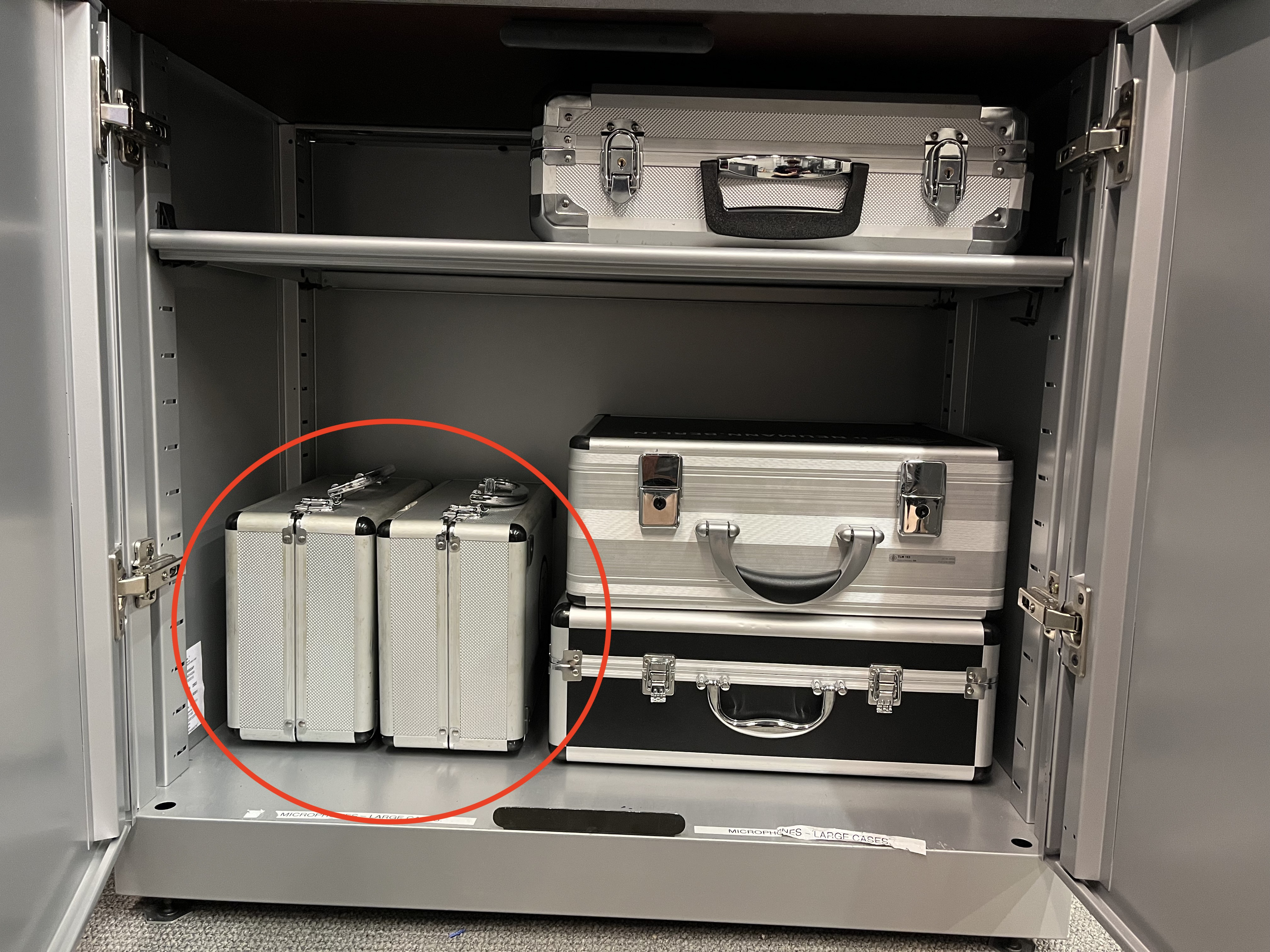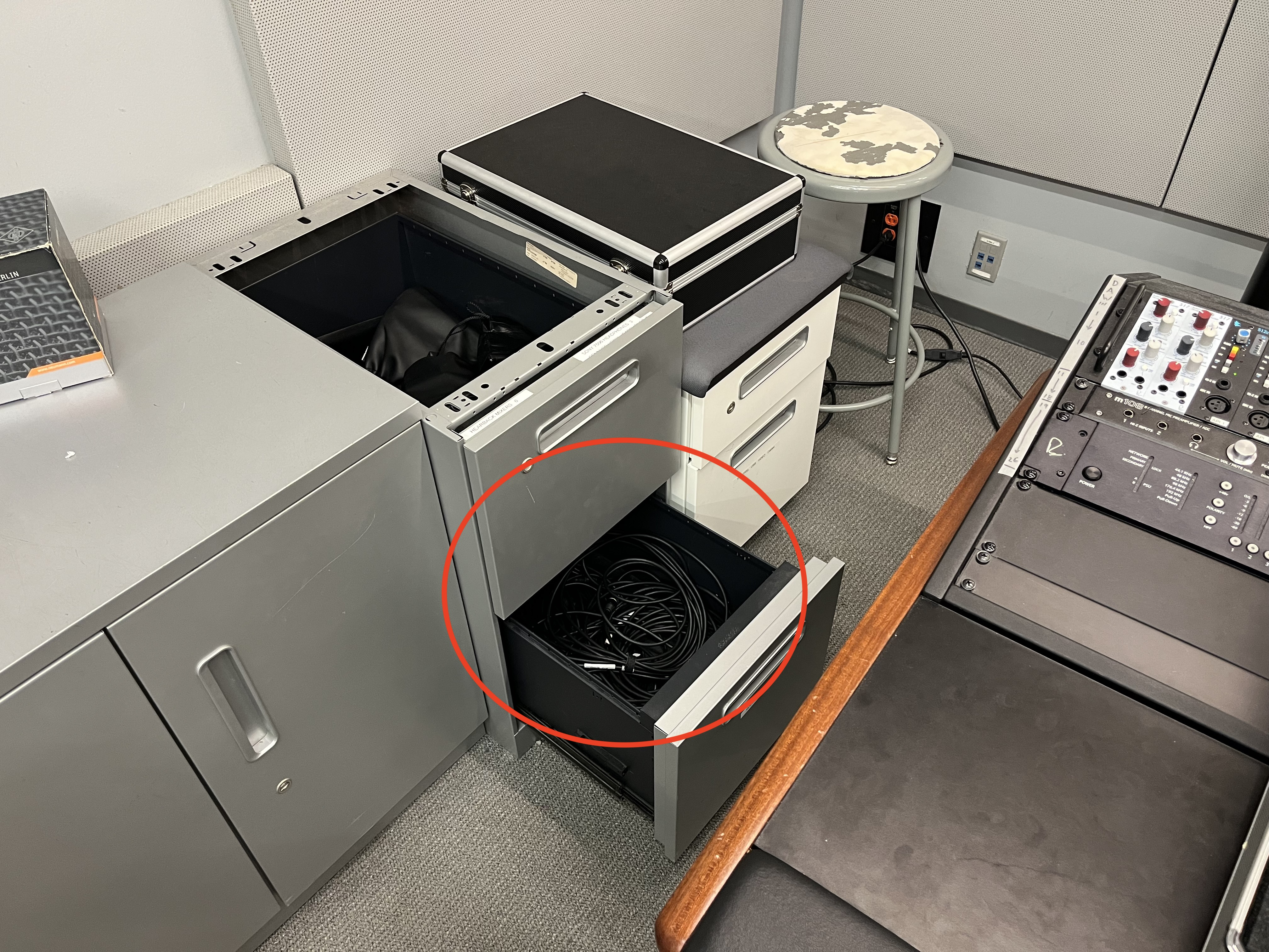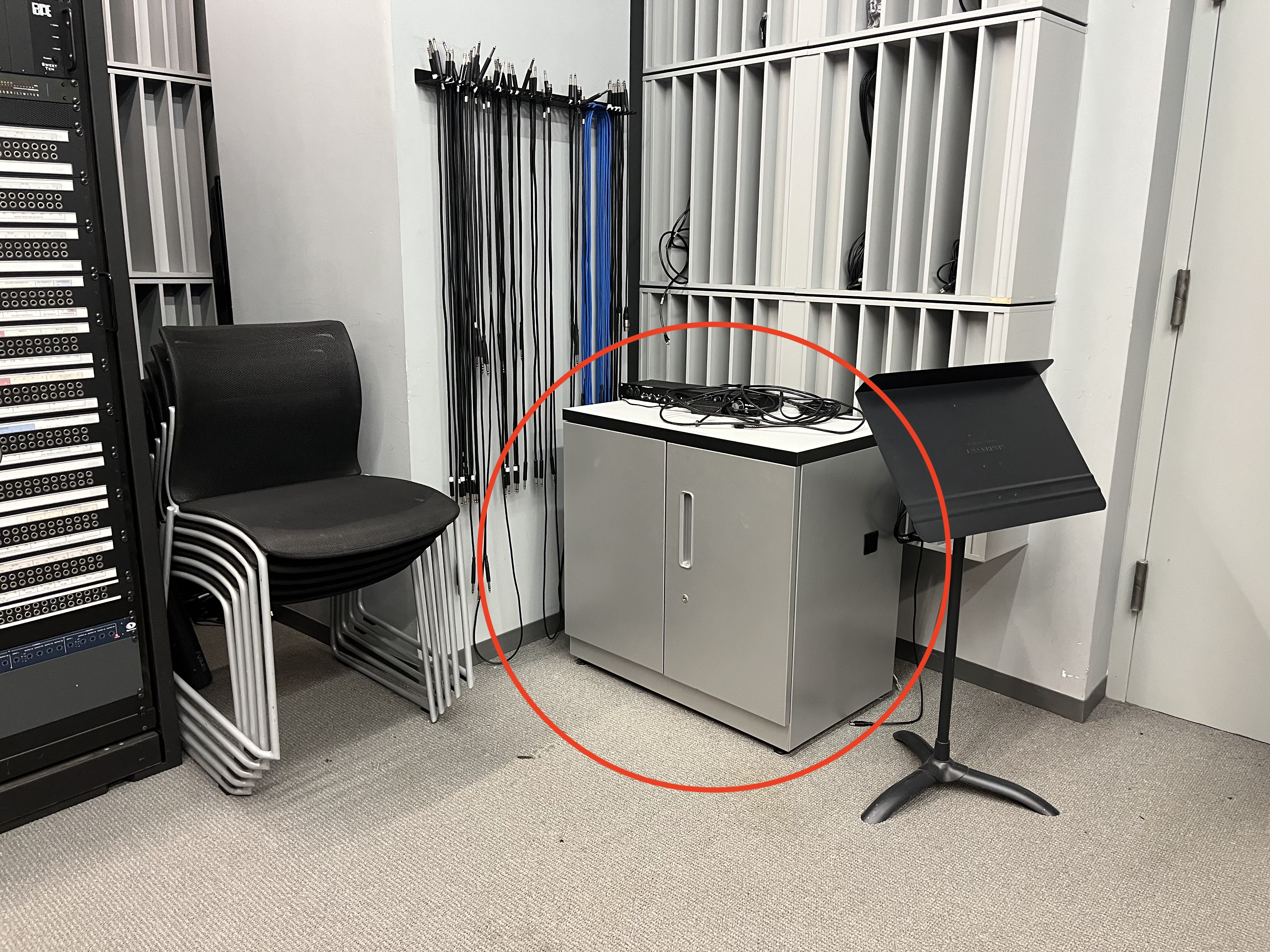 9. Take two **XLR Cables** from the bottom drawer of the left side cabinet